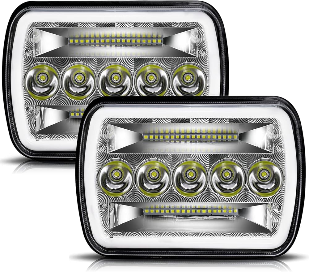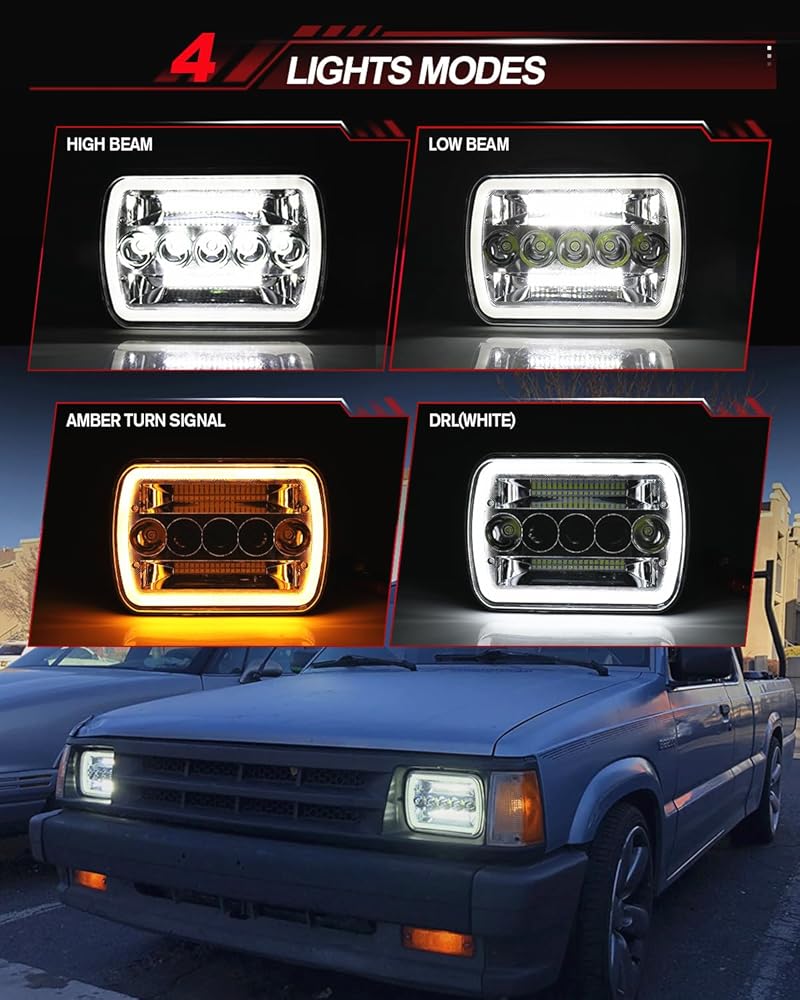 【UNIQUE DESIGN】: 2021 Brand New Rectangular 5x7 led headlights. Unique designed lamp cup, Daytime running light (DRL), Abler turn signal lights. These 7x6 led headlights perfectly upgrade your stock headlight and give your vehicle a dramatic sharp look. DOT approved and marked on lens, legal and safe on the road. Easy to install, just plug and play.