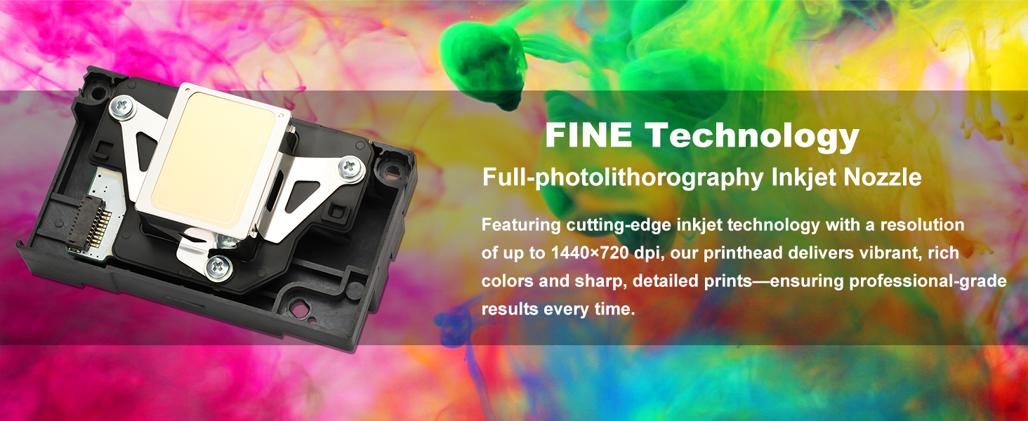 Exceptional Print Quality:Featuring cutting-edge inkjet technology with a resolution of up to 1440×720 dpi, our printhead delivers vibrant, rich colors and sharp, detailed prints—ensuring professional-grade results every time