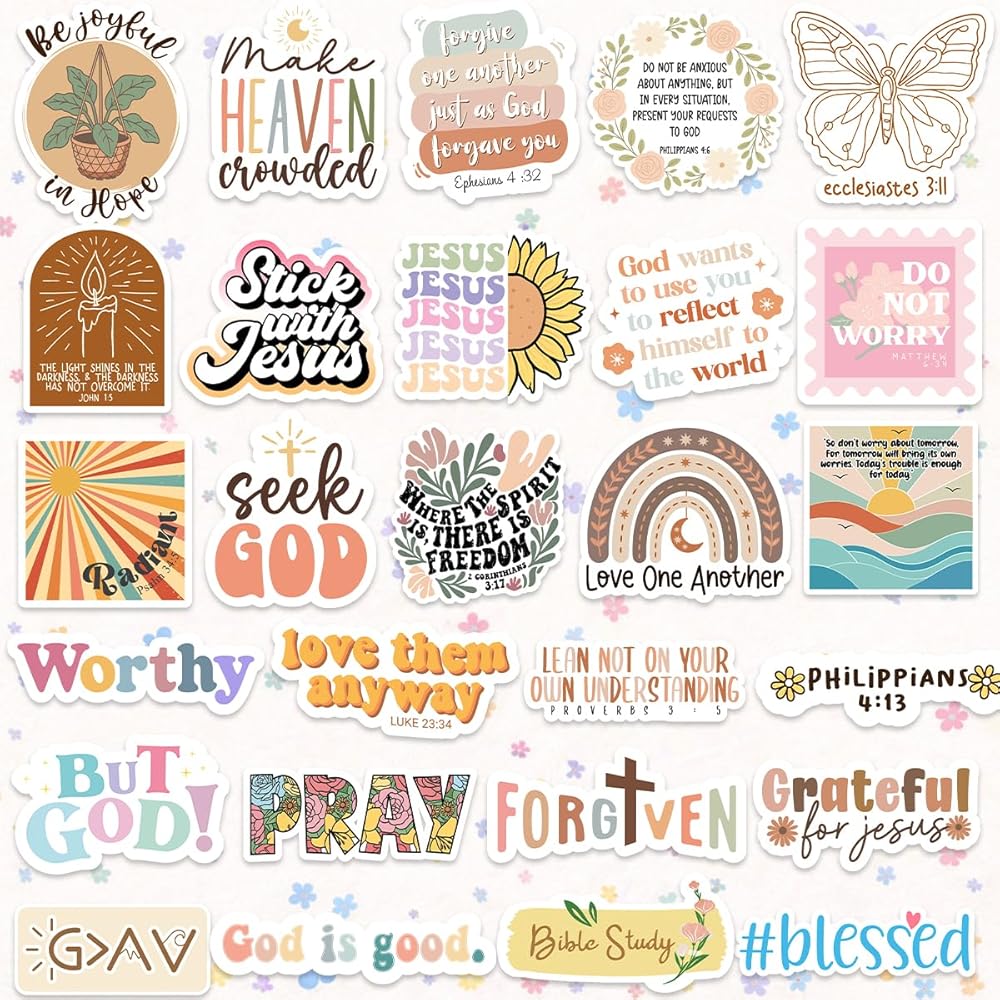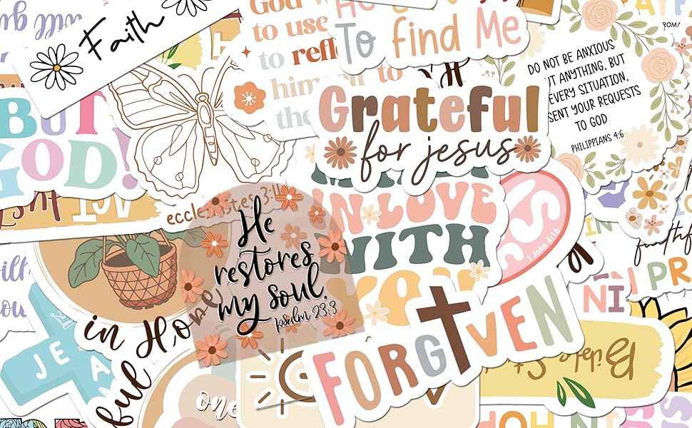 Transform your personal space with these beautifully designed stickers. Featuring delicate floral accents and heartfelt messages, they create a peaceful, reflective atmosphere—ideal for Bible journaling, scrapbooking, and faith-based decor.