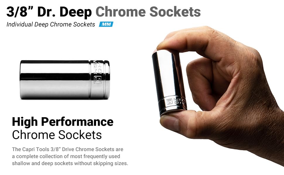 Capri Tools high performance sockets are trusted by professionals for even the most demanding applications. We use premium Chrome Vanadium steel tempered with our proprietary heat treatment process to make these sockets and drivers. They are durable and withstand more torque. Each socket underwent careful polishing and protective plating process to achieve our own flawless MaxChrome finish. The precise 12-point WaveDrive design grips fasteners more tightly than traditional design, preventing fastener rounding and giving you more leverage.