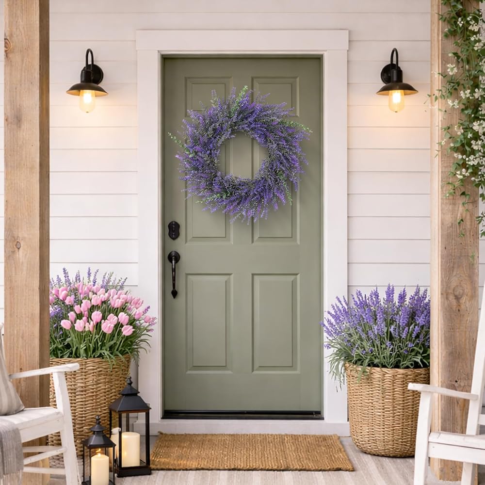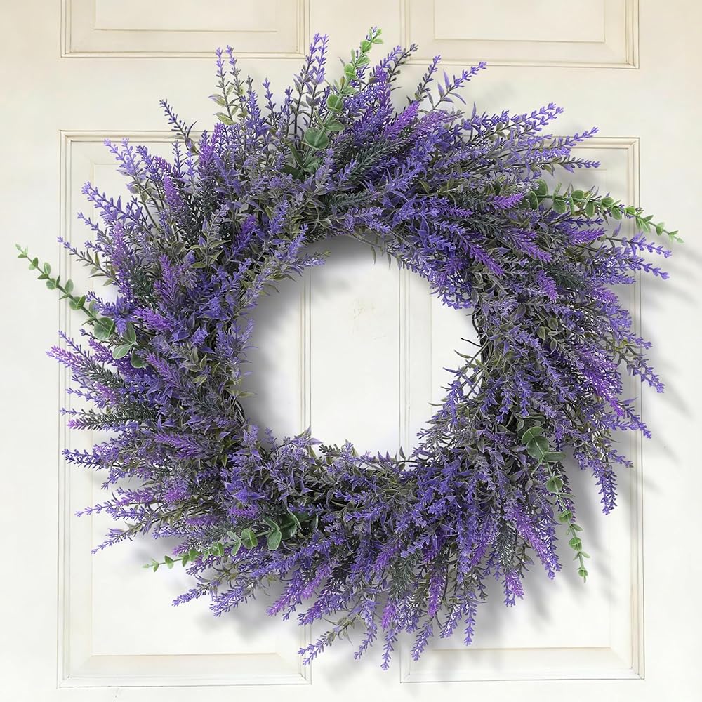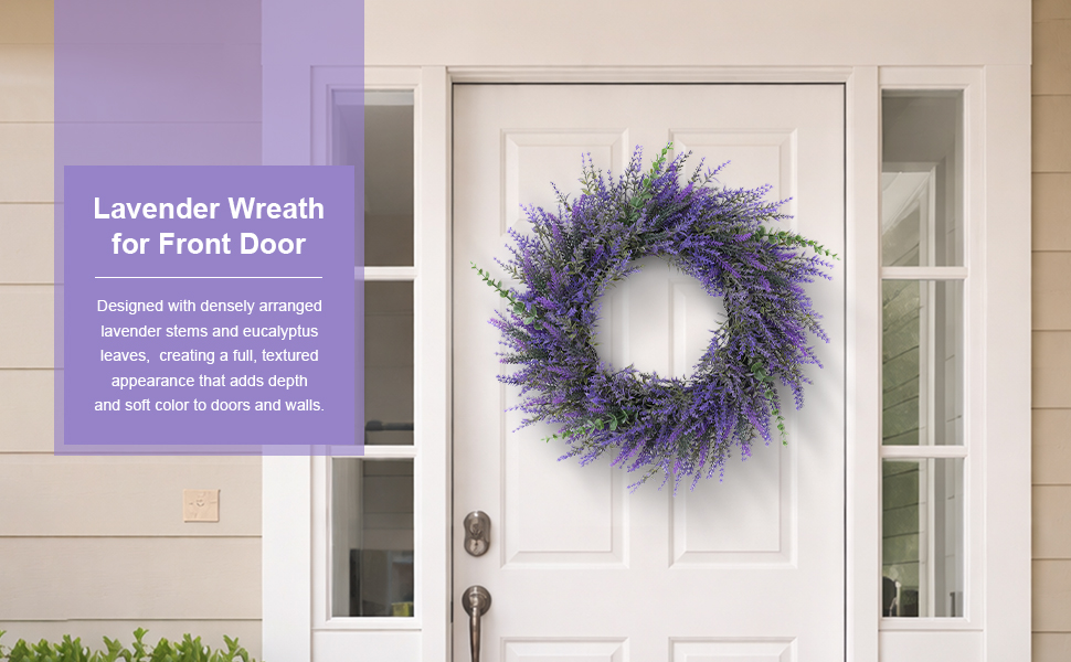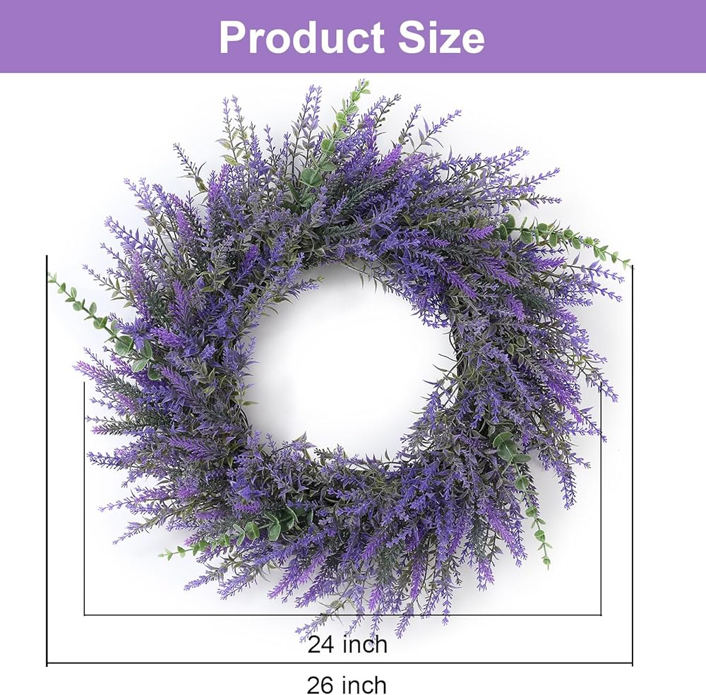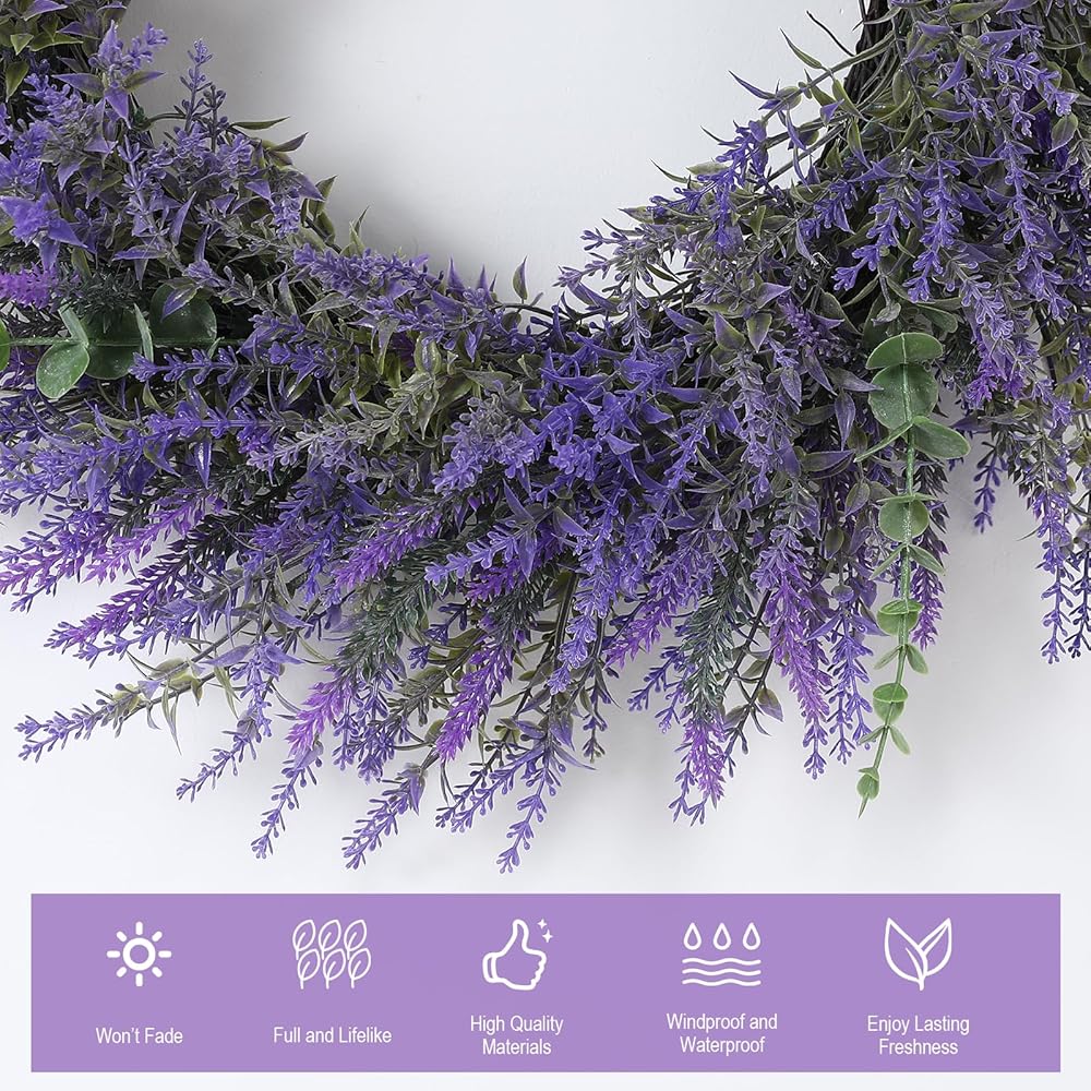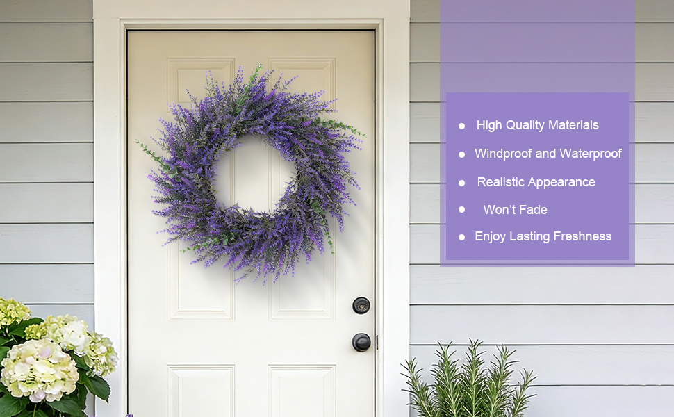 Quality Material--Our lavender wreath are made of high-quality plastic, durable, wind and water resistant, perfect for indoor and outdoor decoration.