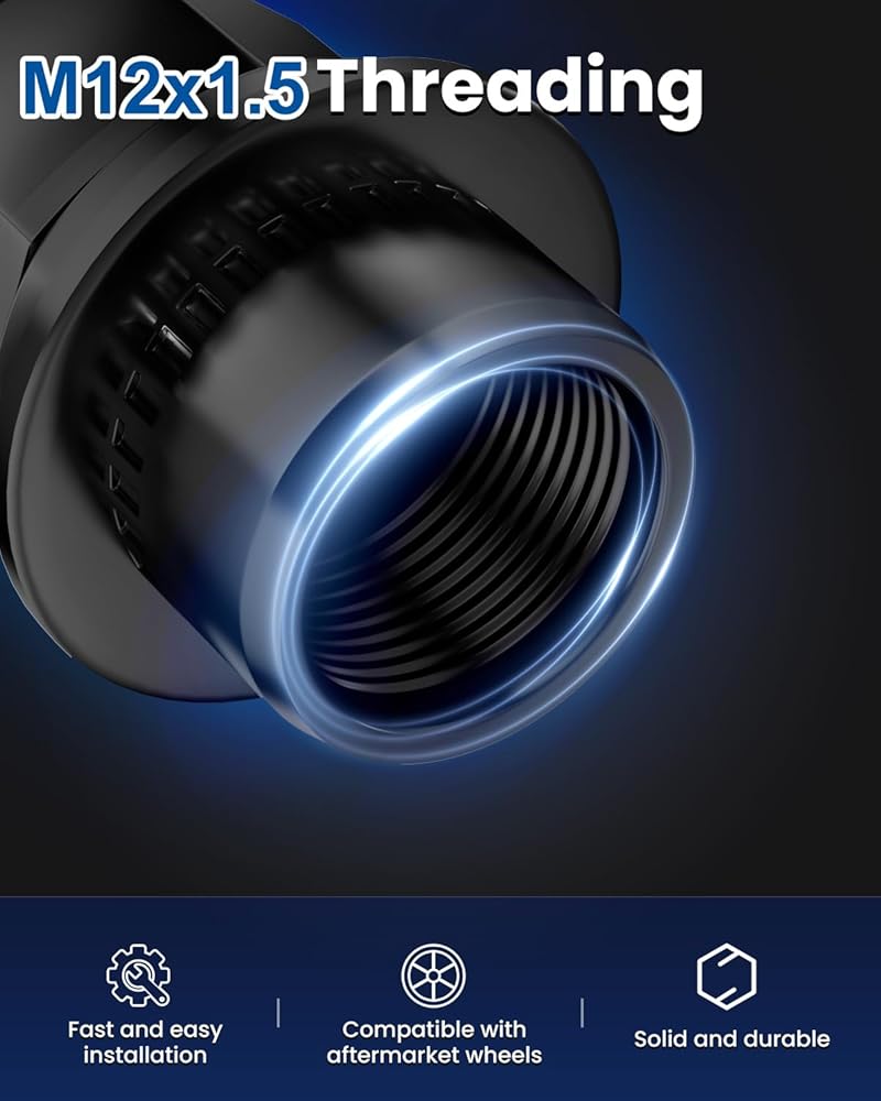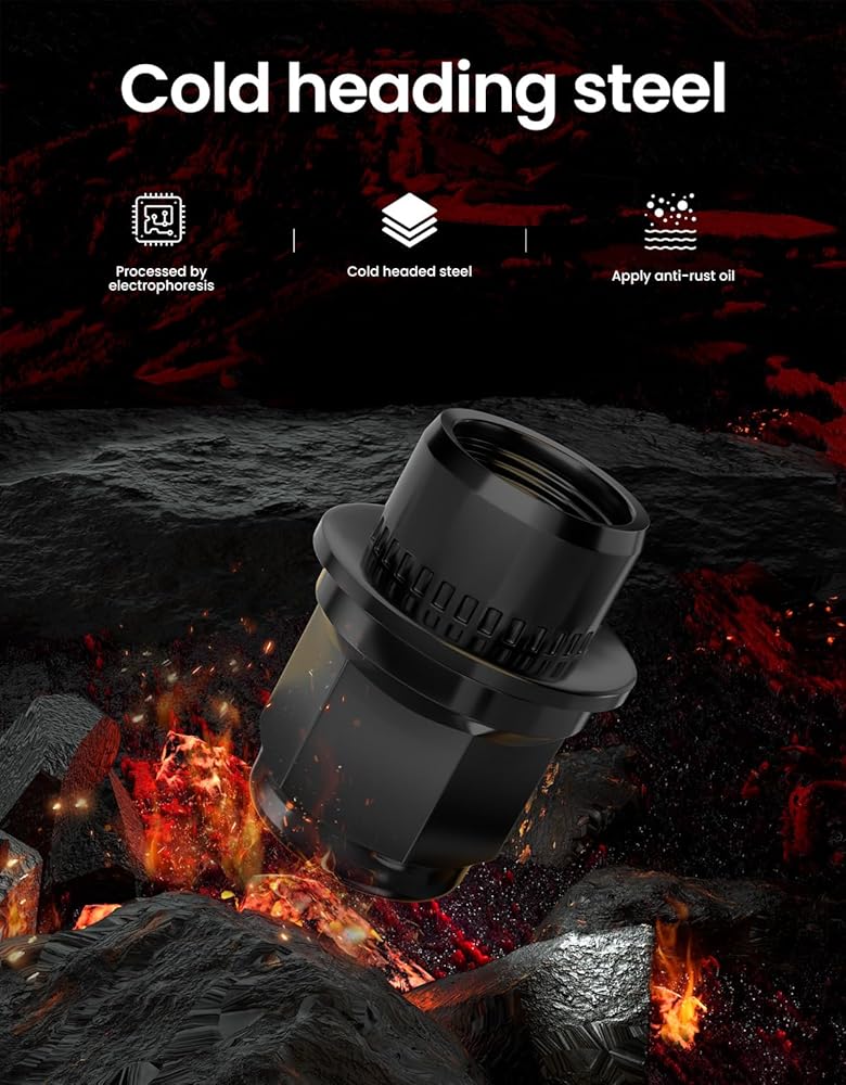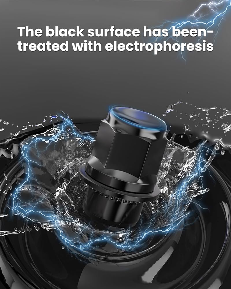 Features - Solid One piece design. Our black lug nuts are made of high-quality steel and have a black surface formed by electrophoresis. The color is more durable, not easy to rust and fade.The thread is clear, clean and easy to install