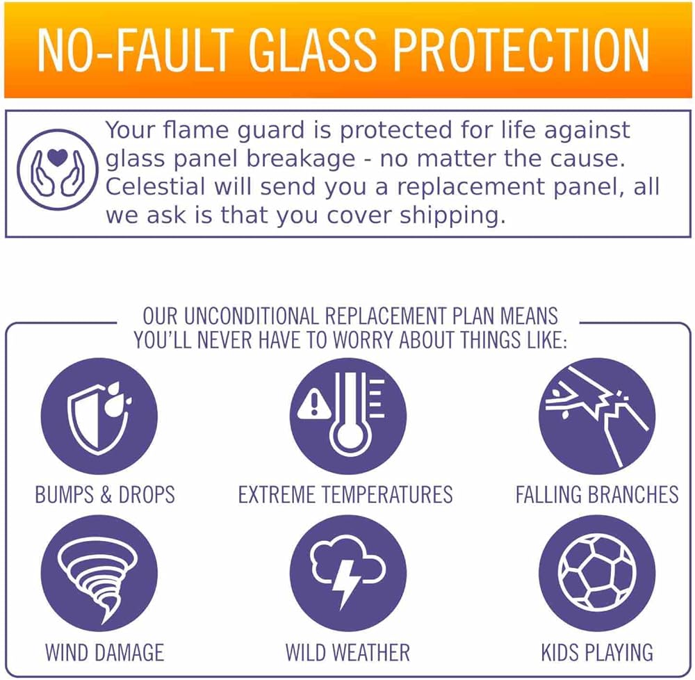 • No-Fault Glass Protection Plan: All Celestial wind guards are protected from glass breakage with our no-fault protection plan. If for any reason a glass panel breaks we will replace it - all we ask is that you cover shipping and packaging.