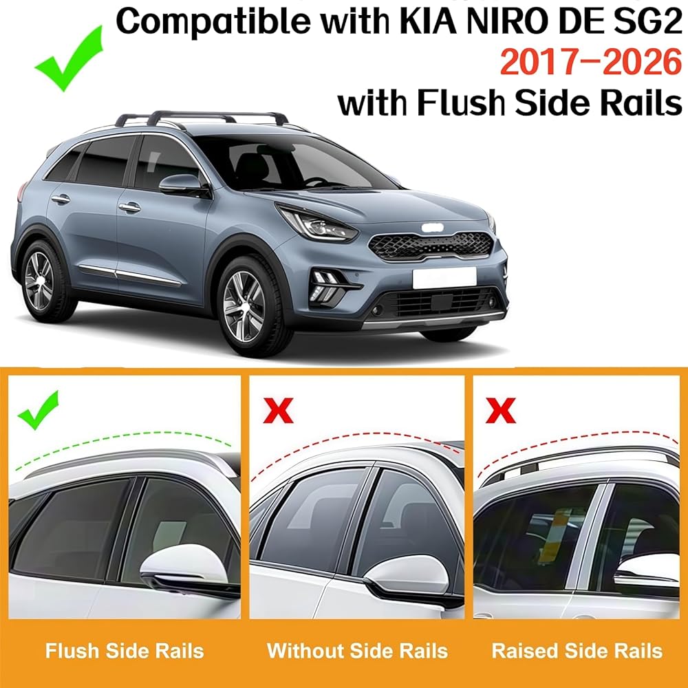 【COMPATIBILITY】This crossbars is compatible for KIA NIRO DE SG2 2017-2026 2017 2018 2019 2020 2021 2022 2023 2024 2025 2026 (with Flush Side Rails). This roof rack cross bars is specifically replacements for your vehicle, roof rails and cross bars can help you solve all your troubles, roof crossbars are great travel helpers