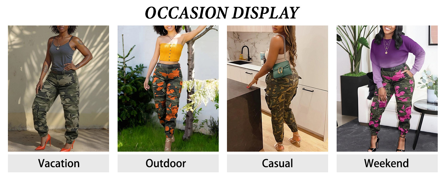 Accessorize: This camo jogger pants for women is a trendy army fatigue pants for women. It's easily pairing with tanks, shirts, boots, heels, sandals, blouse, earrings, bags and so on.