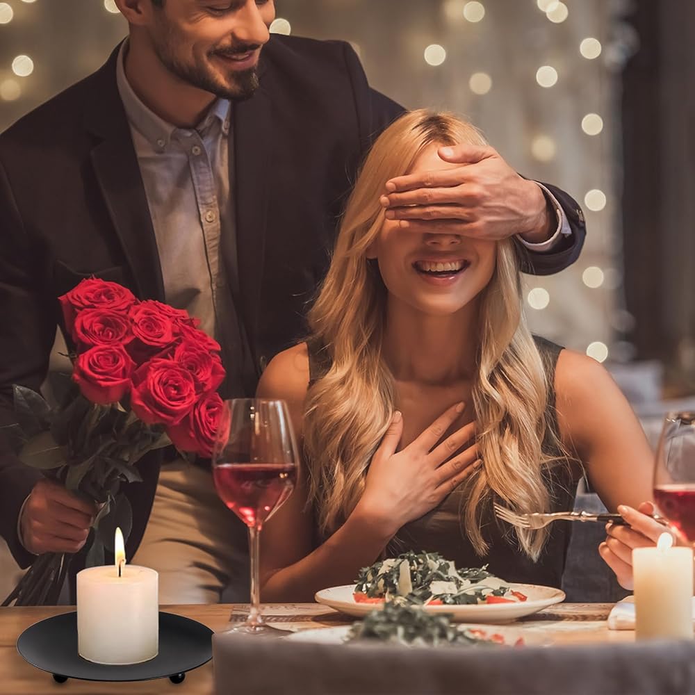 Bgtecho Iron Plate Candle Holder Set of 15, Black Candle Stand Plate, 4 Inch Candle Holders for LED & Wax Candles, Decorative Pillar Candle Plate for Valentines Weddings Party Decorations.