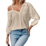 Stylish Design: This women's shirt features a unique single shoulder design, adding a trendy touch to your wardrobe. Perfect for those who want to showcase their individuality while staying fashionable.