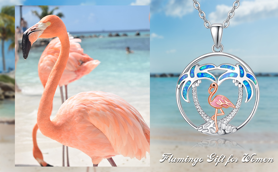 🦩【S925 Sterling Silver Pendant Necklace】— Cute flamingo necklace made of S925 sterling silver with blue opal plam tree.