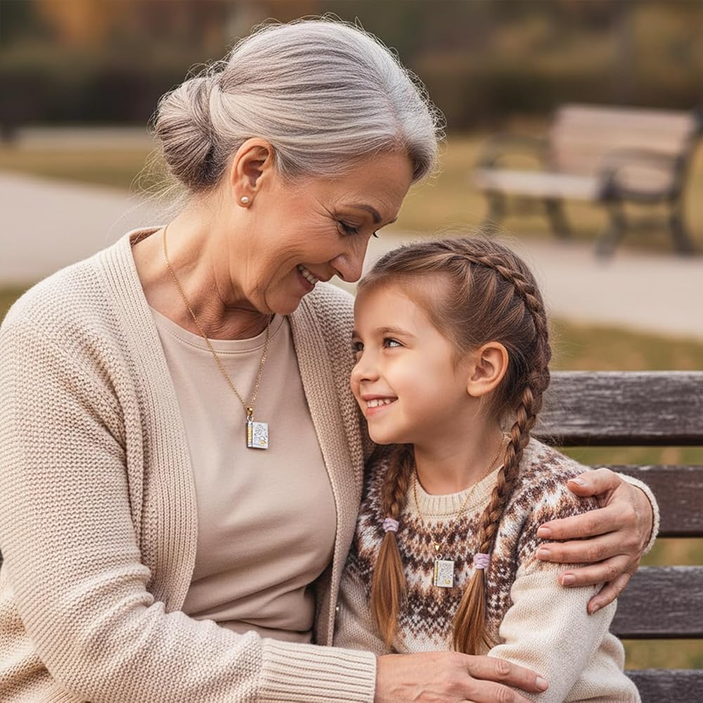 Designed by Visual Artist Mikel Muruzabal: This book shaped pendant engraves the unique emotional bond between you and your grandparents, giving your granddaught the most precious keepsake