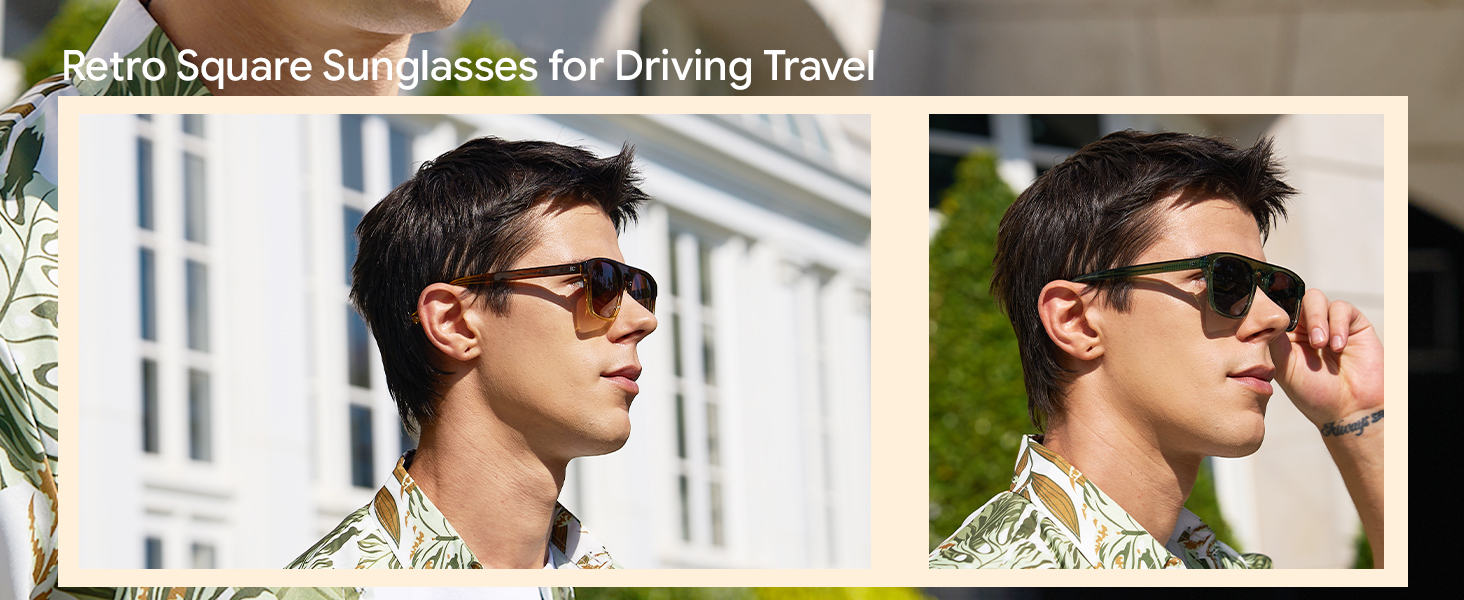 【Everyday Square Style】These square sunglasses for men are made for everyday life—commuting, driving, grabbing coffee, or heading out after work. The clean square shape adds structure to your look without feeling too bold, making them easy to wear with both casual and work outfits. Finished in classic colors like tortoiseshell and wood-grain, these men's sunglasses look polished but never overdone. They're not just about style—they're a comfortable, go-to pair you'll actually wear every day.