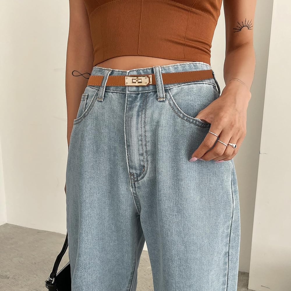 The belt is crafted from high-quality faux leather that resists wrinkles and is easy to clean. Its smooth, soft texture ensures comfortable wear. Featuring a metal buckle with a sliding adjustment mechanism for effortless on/off, it flexibly accommodates waist sizes from 19.5 to 35.5 inches to suit various body types. The slim silhouette enhances the sophistication of your outfit, catering to diverse body shapes and occasions.
