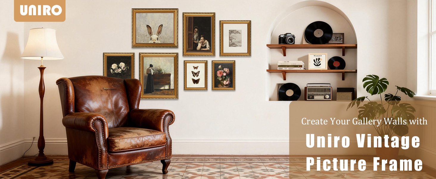 【High Quality Vintage Frame】:Crafted from durable yet lightweight PS material, this 8x10 picture frame is fitted with HD plexiglass that provides crystal-clear visibility like real glass while being shatterproof. Whether used as a gold picture frame on a tabletop or hung on the wall, it offers a safer, more durable option for homes with kids or pets without compromising on elegance.