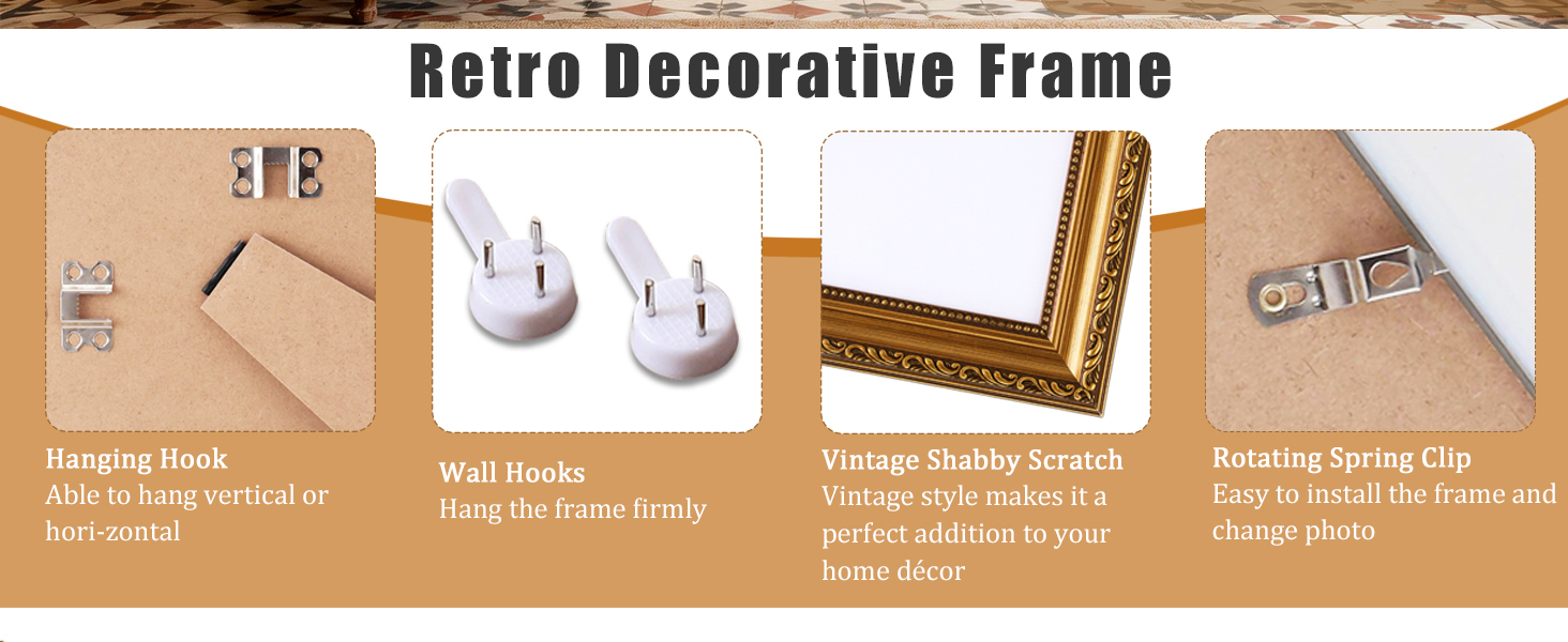 【Versatile Wall & Tabletop Display】:Designed for flexibility, this vintage photo frame features a sturdy kickstand and built-in hanging hooks for both vertical and horizontal display. Easily convert it from a tabletop accent to a striking piece of wall hanging decor, making it a versatile choice for any room in search of vintage wall frames. Wall nails are included for easy installation.