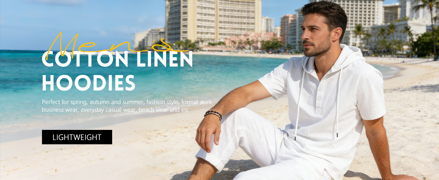 【Premium Fabric】This lightweight hoodie for men is crafted from a high-quality cotton-linen blend, offering comfort, breathability, and a soft touch. It is lightweight, wrinkle-resistant, and moisture-wicking, specifically designed for hot summer days.