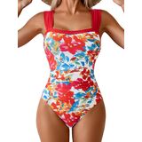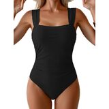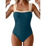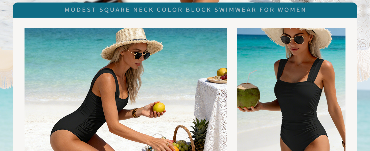Fashion Design: The square neckline and color block design bring on-trend style, creating a chic, effortless vibe. With modest yet flattering bottom coverage, it allows free, confident movement