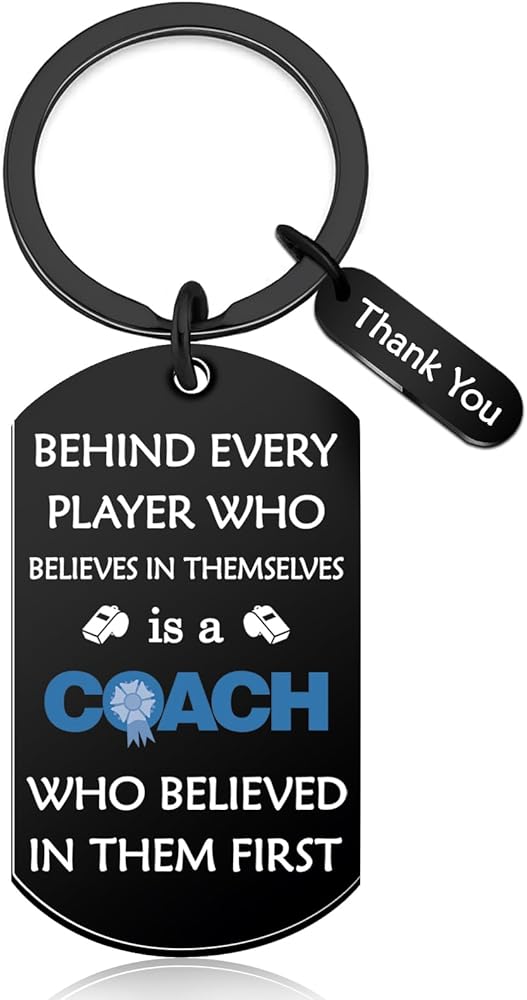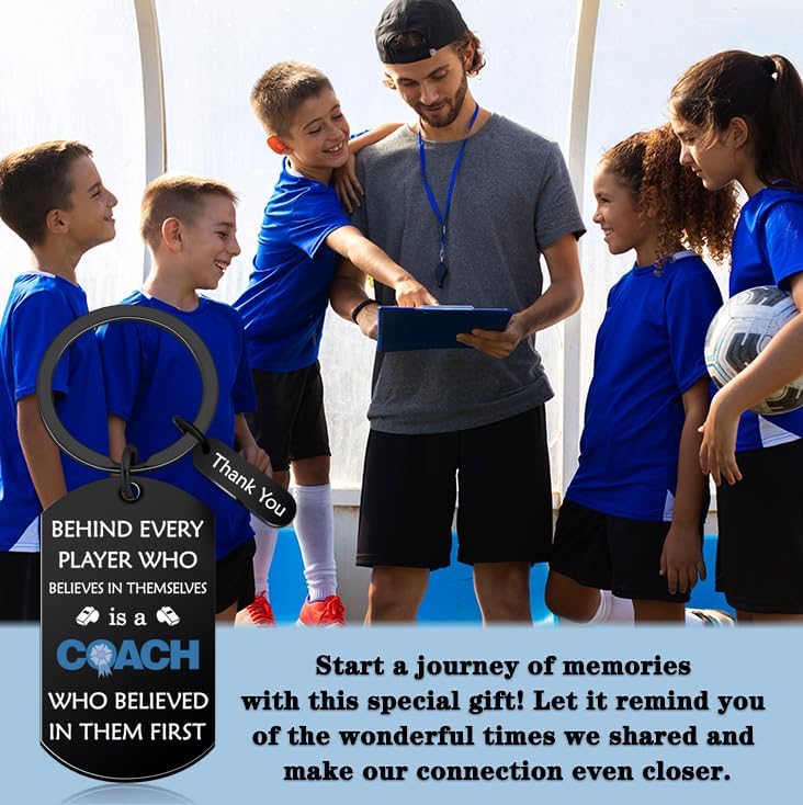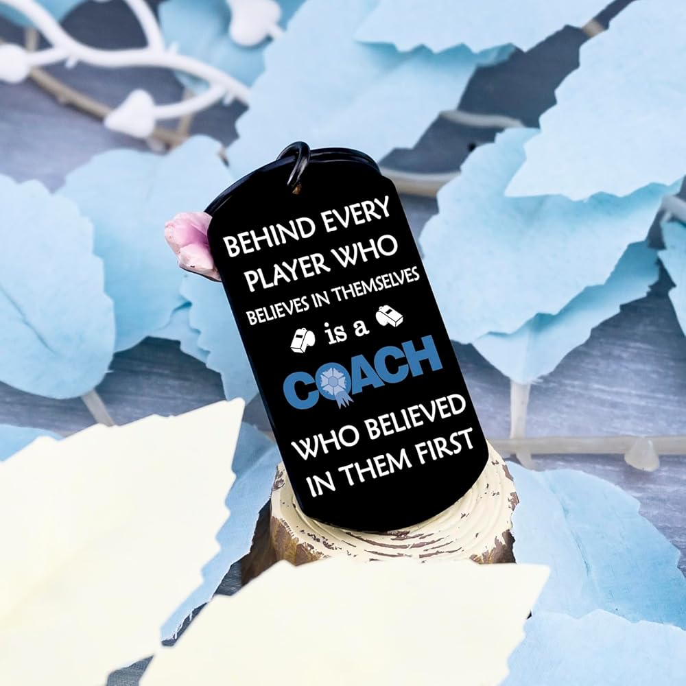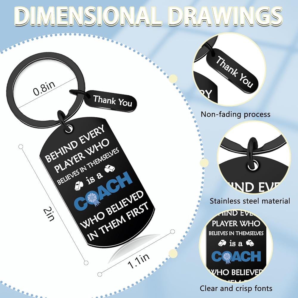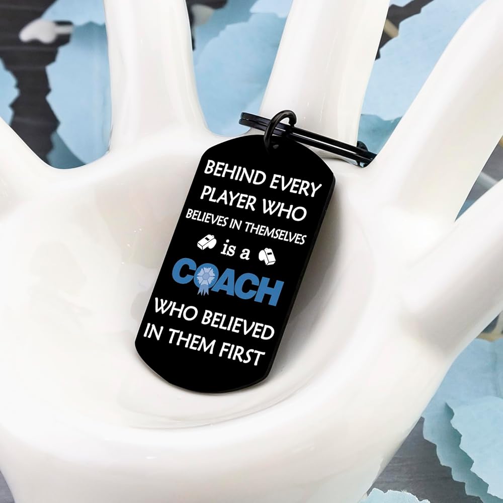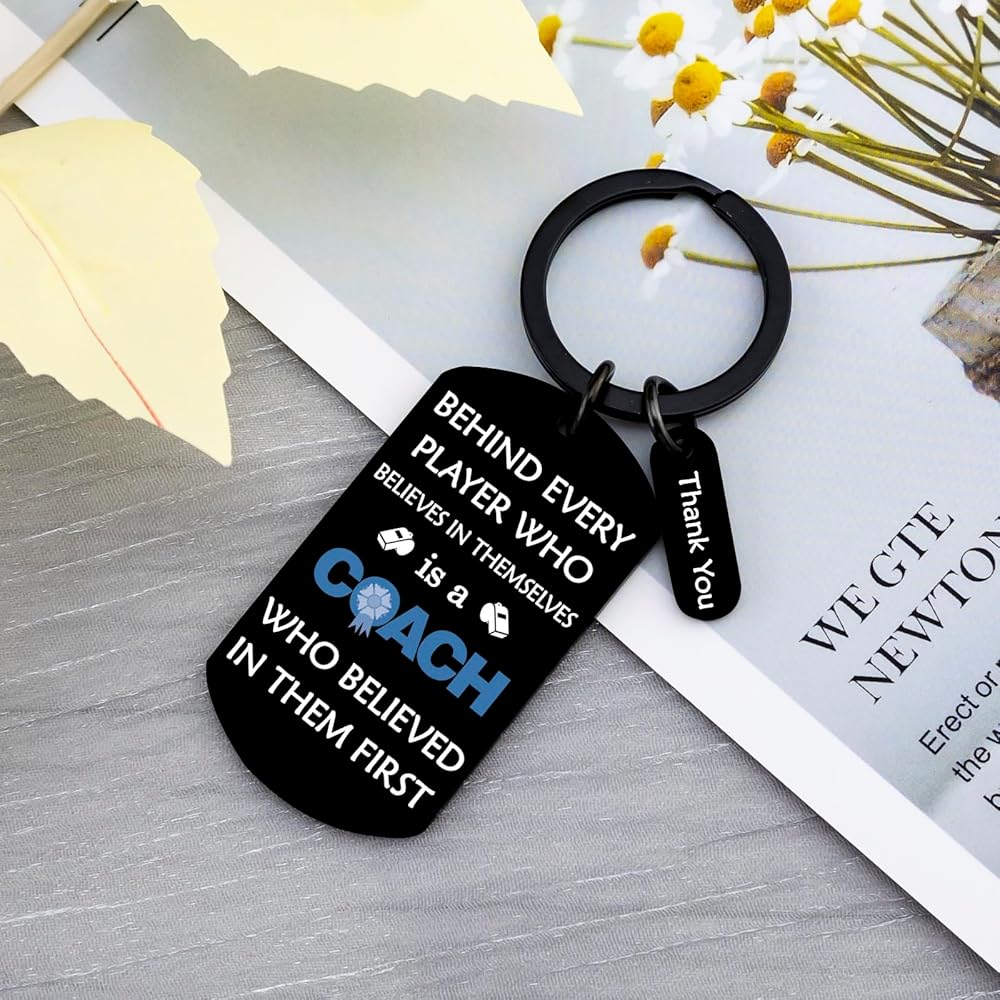 Coach Keychain/Coach Gifts: The coach keychain features the heartfelt engraving, "Behind every player who believes in themselves is a coach who believed in them first," making it a meaningful gift for baseball, basketball, volleyball, soccer, and softball coaches.
