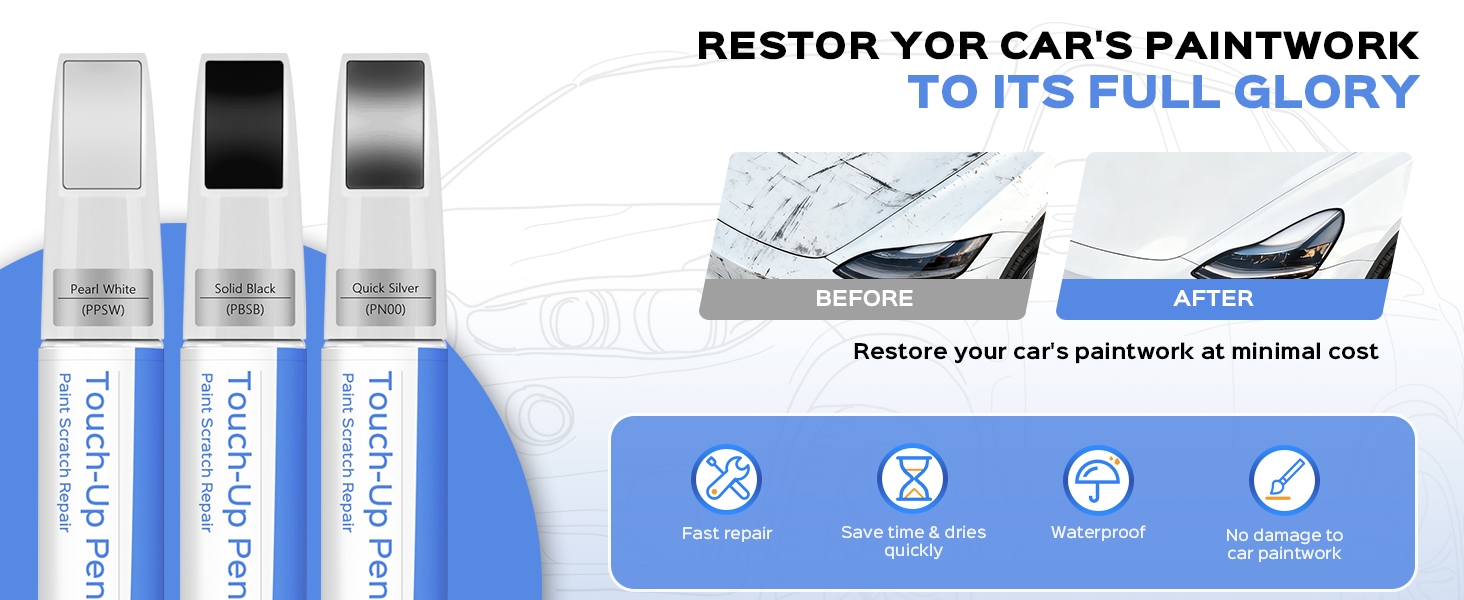 Make Scratches Disappear:This pen is compatible with tesla model 3/x/y/s models and is designed to repair various paint chips and scratches, restoring your car original allure.With its precise color matching, the pen seamlessly blends with your car's existing paint, delivering a flawless repair.