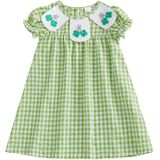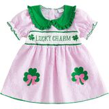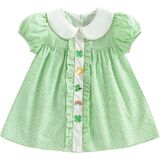 Toddler Girl St. Patrick's Day Outfit Shamrock Embroidery Plaid Print Short Sleeve Peter Pan Collar Dress Kids Irish Clothes