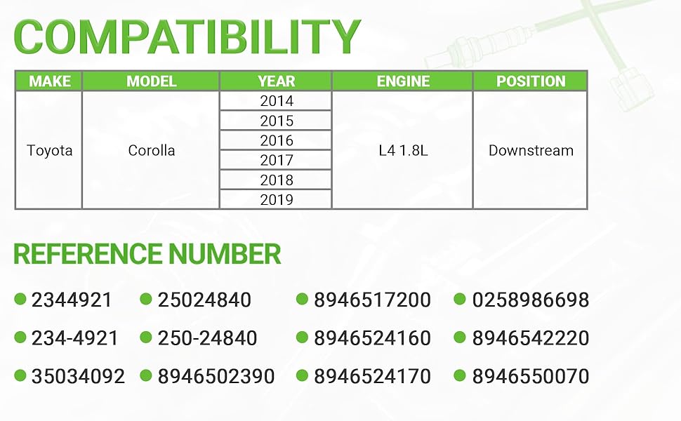 [Vehicle Fitment]: Downstream: Compatible with Toyota Corolla 2014-2019 L4 1.8L Petrol