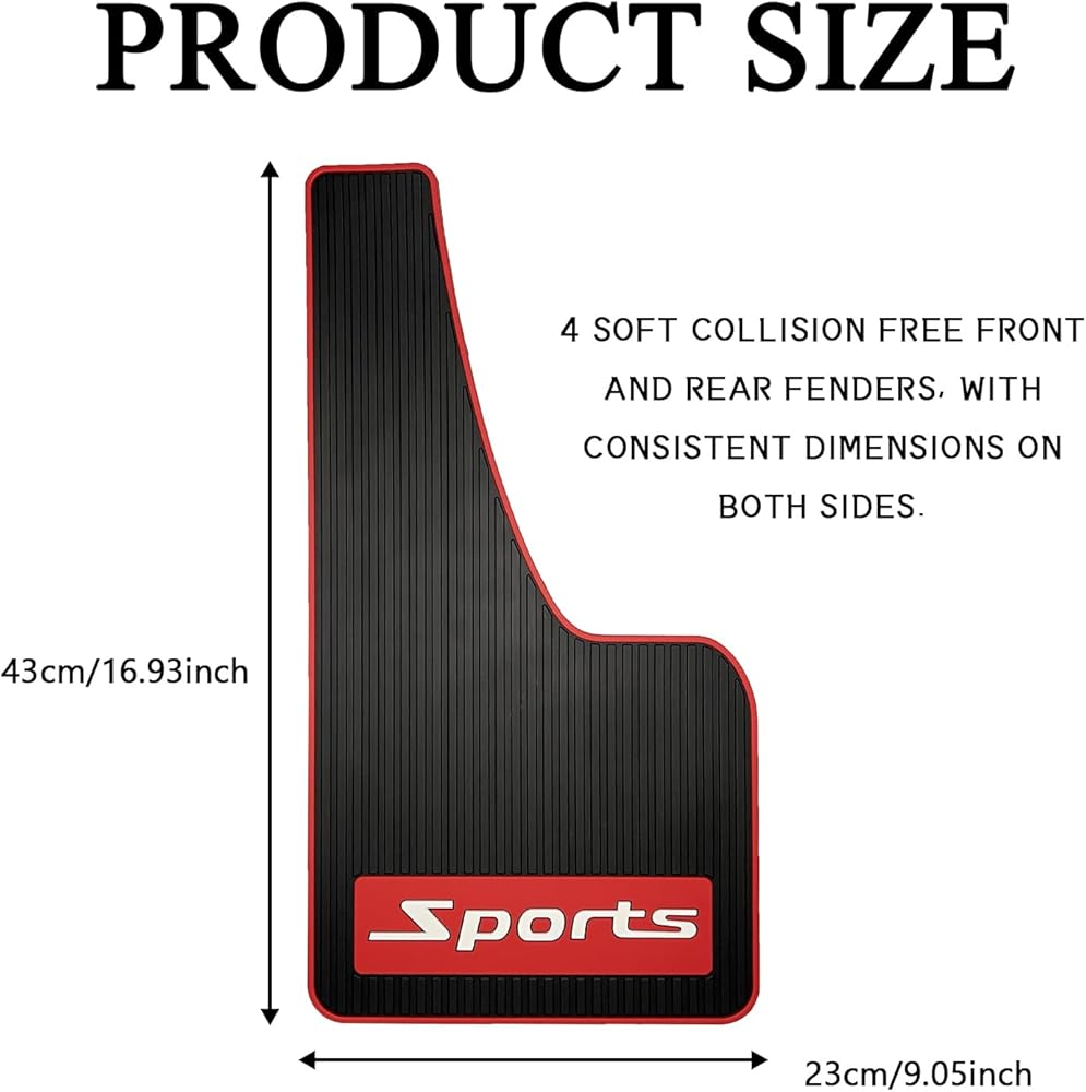4PCS Car Mud Flaps, Soft Rubber Mudguard Fender Splash Guards for SUV/Truck/Sedan, Universal Sports Mud Flaps Guards Splash, Front & Rear Set with Hardware, Anti-Collision Design (43x23cm)