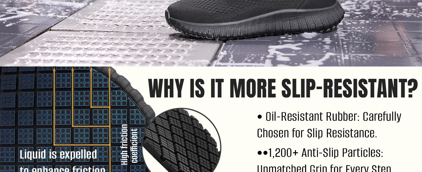 SLIP-RESISTANT OUTSOLE: Designed for professional work environments, these non slip work shoes for men feature a high-traction outsole with a non slip tread pattern. The newly upgraded slip-resistant outsole enhances durability and delivers stronger grip than previous designs, providing stable, non-slip performance on wet, oily, and other slippery surfaces commonly found in demanding workplaces. They meets the requirements of high-intensity slip resistance for work use.