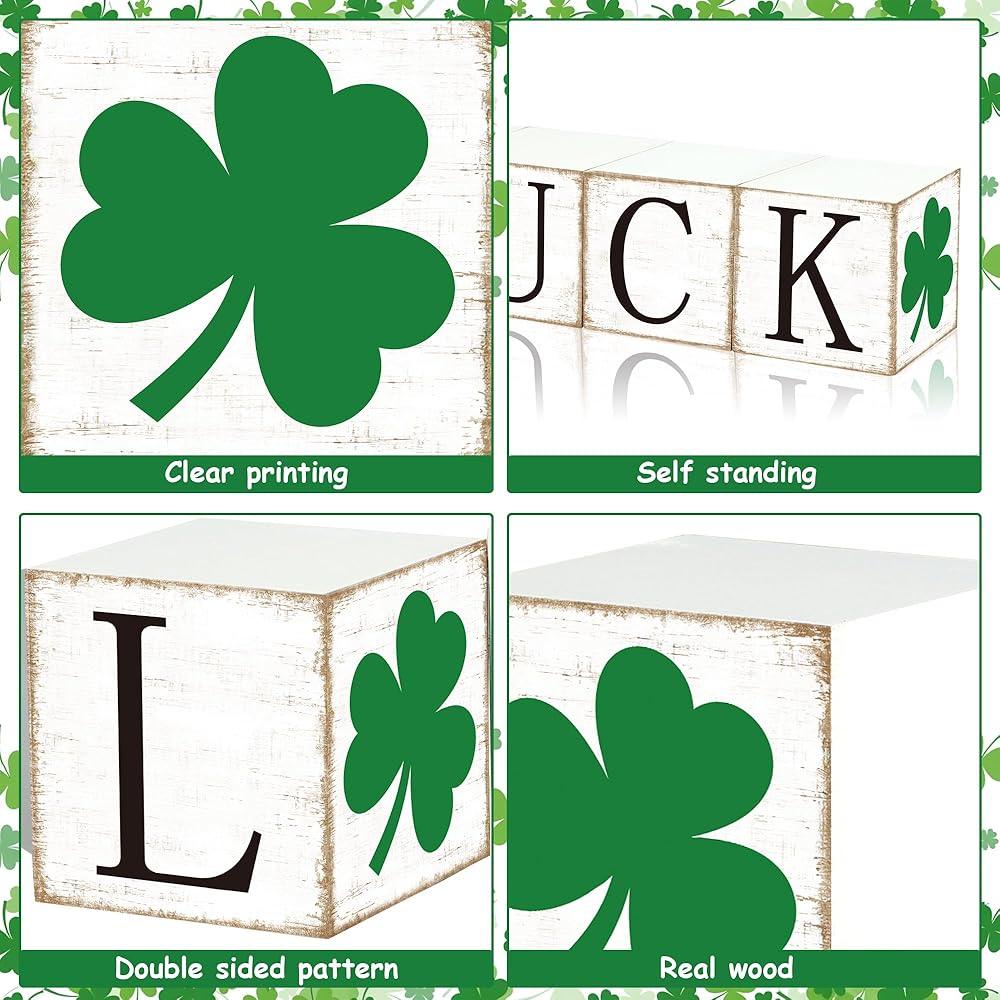 St. Patrick's Day wood decorations set: you will receive 4 pieces of St. Patrick's Day wooden table signs, each wood block is about 2.75 x 2.75 x 2.75 inch/ 7 x 7 x 7 cm, the proper size and enough quantity to meet your St. Patrick's Day party decoration needs, add a touch of rustic charm to your home.