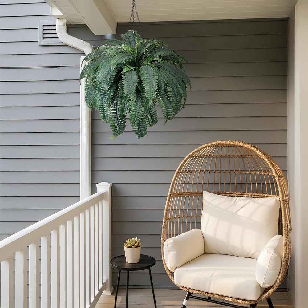 [Durable]:These ferns specially designed as durable outdoor artificial plants with UV protection. Perfect for hanging plants, garden, porch, patio, windowsill, yards, farmhouse, they offer versatile decoration for any artificial plants outdoor scenario.