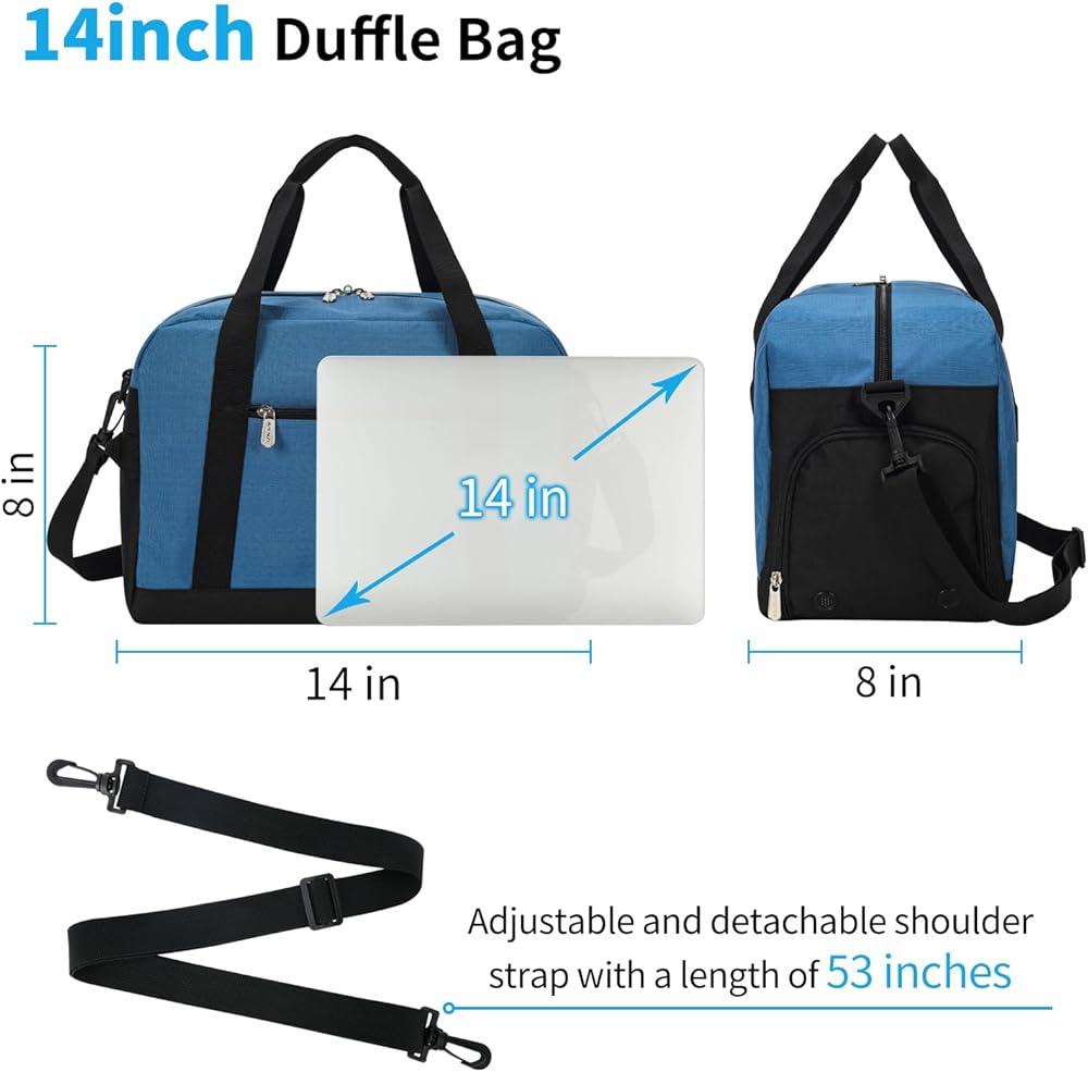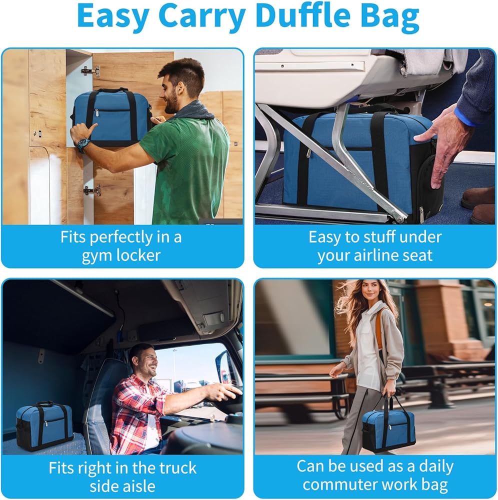 CARRY ON SIZE:This carry on duffel bag is perfect for storing personal items while traveling and can be carried on the plane with you, easily fits under United Airlines seat when filled to capacity.
