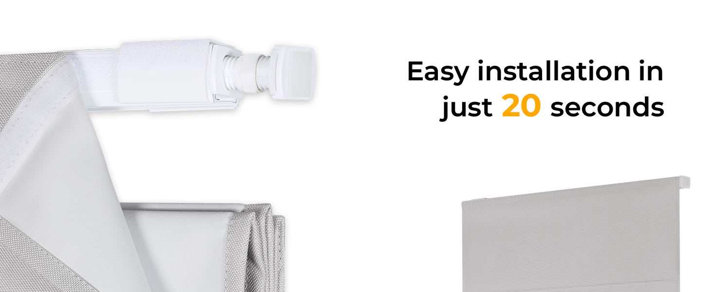 【No Drilling, 20-Second Quick Installation】: The Roman shade features the latest easy tension-mount system—no tools or drilling required! It can be securely installed in just 20 seconds without damaging your walls, making it a time-saving, effortless, and removable solution—perfect for renters. Made of linen fabric, the shade blends seamlessly with your home decor, meeting your needs for both stylish design and simple operation.