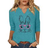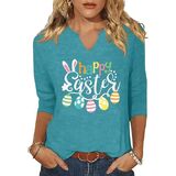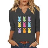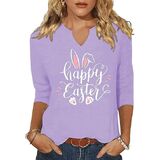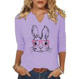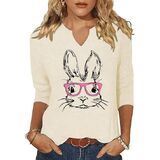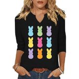3/4 Sleeve V Neck Shirts for Women Cute Bunny Easter Eggs Graphic Shirts Spring Outdoor Comfort Tops Blouse in Kuwait