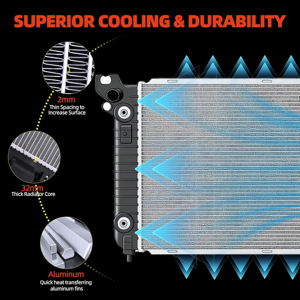 【SUPERIOR COOLING PERFORMANCE】 Features a high-density, premium aluminum core with multi-louvered fins for maximum heat dissipation and cooling efficiency. Engineered to prevent overheating and ensure reliable engine performance, even under heavy load or in extreme weather conditions.