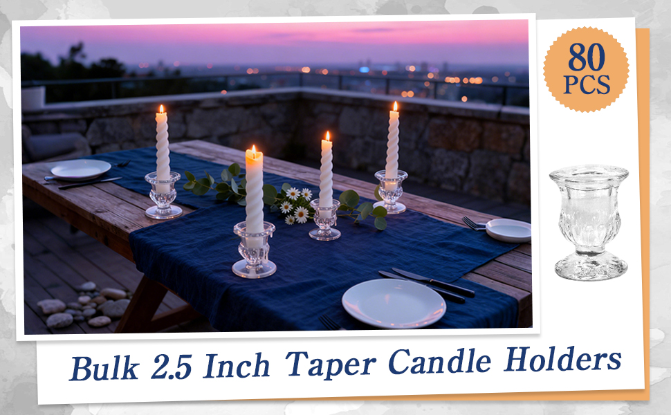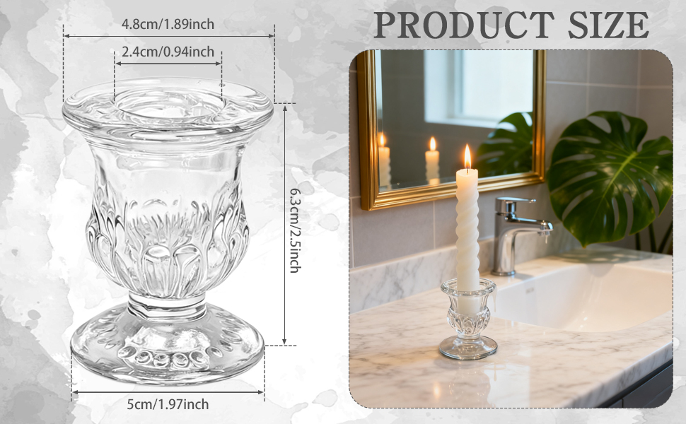 Convenient Size:Each glass candlestick holder measures approximately 1.97 inches in base diameter, 2.5 inches in height, 1.89 inches in top diameter, and 0.94 inches candle hole, candles 2.5 Inch glass