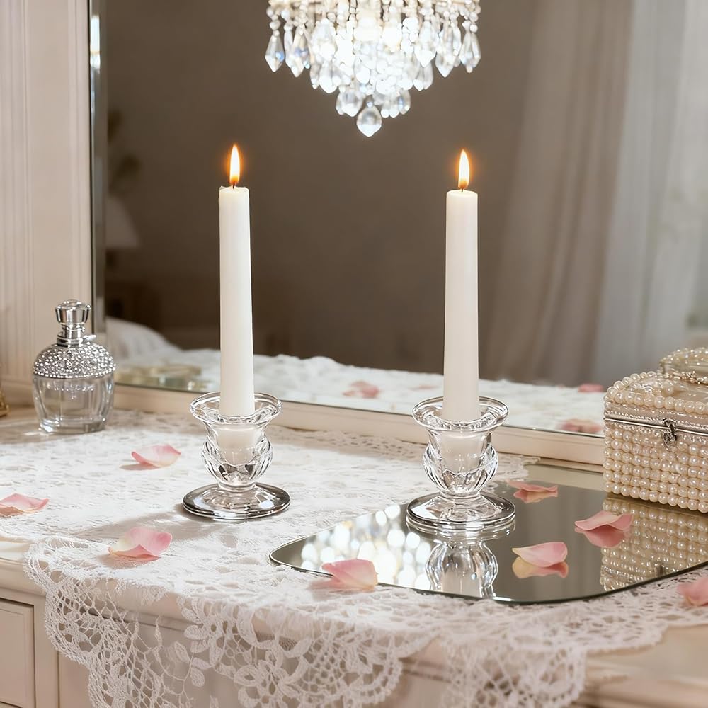 Solid and Reliable Construction:With thick glass walls and a weighted base, these glass candlestick holders are strong and stable, minimizing the risk of tipping or cracking, designed for lasting use and enjoyable display