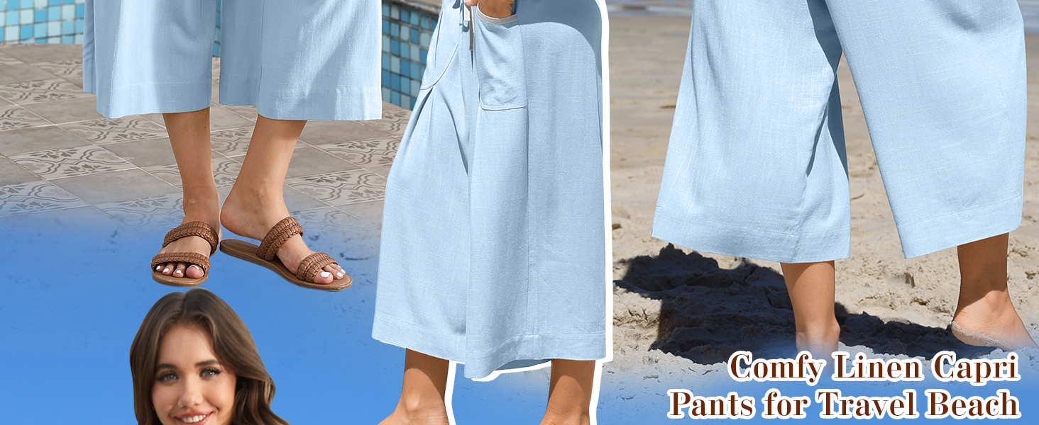 Linen crop pants made linen blend fabric are breathable and skin friendly keeping you cool and comfortable in hot summer weather perfect for daily wear vacation and travel
