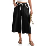 Loose fit wide leg capri pants provide freedom of movement perfect for casual lounge walking yoga beach and home wear. Casual vacation style pairs easily with tank tops t shirts sandals or slippers suitable for beach travel resort cruise and daily errands