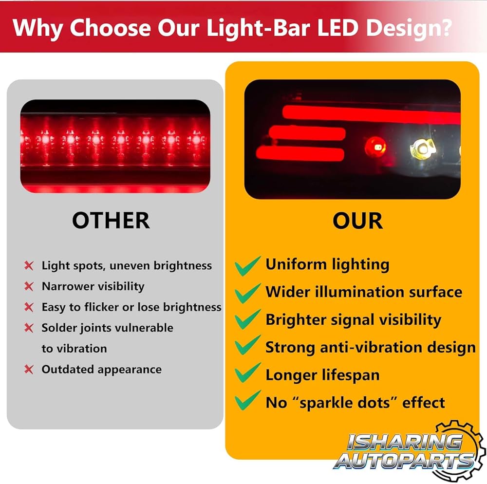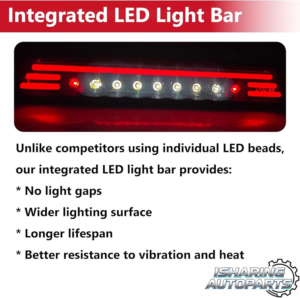 Feature: LED 3rd brake light can provide better visibility for rear lighting, the continuous light output provides stronger, wider, and more uniform illumination for improved safety during braking