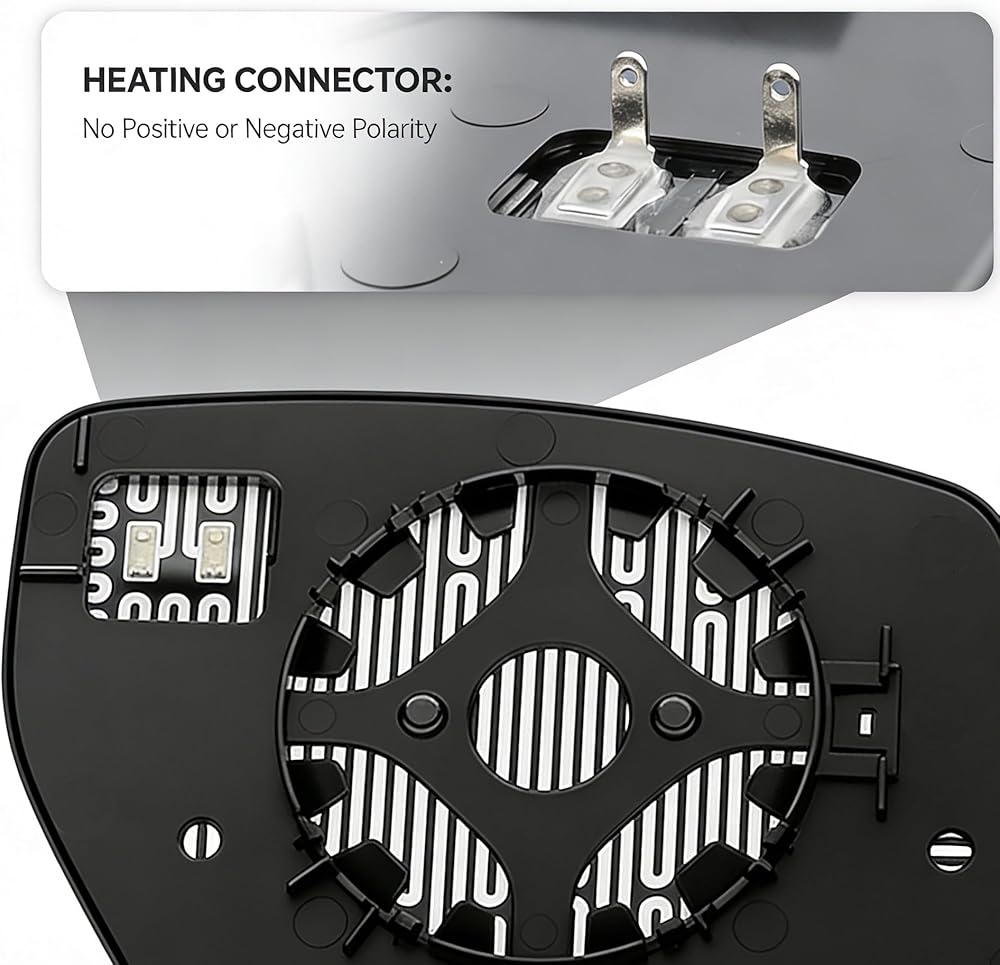 【Usage Method - Simple Installation】The installation process is designed for Plug-and-Play convenience. The backing plate integrates the original-style 2-pin heating connector . Simply transfer the vehicle's wiring harness from the old mirror to the new backing plate and snap it into the mirror housing—no trimming or modification required, completing the job in just minutes.