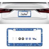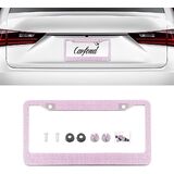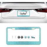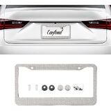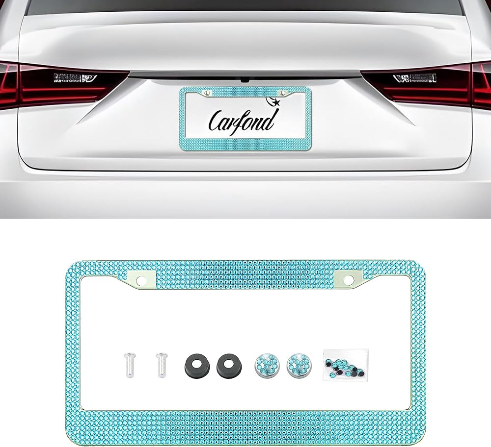 - The rhinestone license plate frame is made from high-quality stainless steel and will withstand all weather driving conditions. The edge of the bling license plate frame for women has been ground to prevent scratching the car's paint.