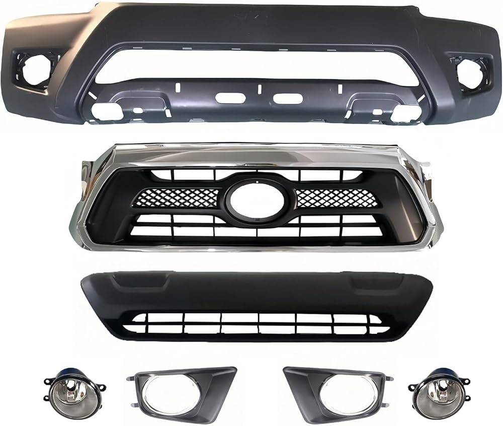 Front Bumper Cover Grille Kit Complete: Fits 2012 2013 2014 2015 To-yota Tacoma; Note: Without Wheel Opening Flares