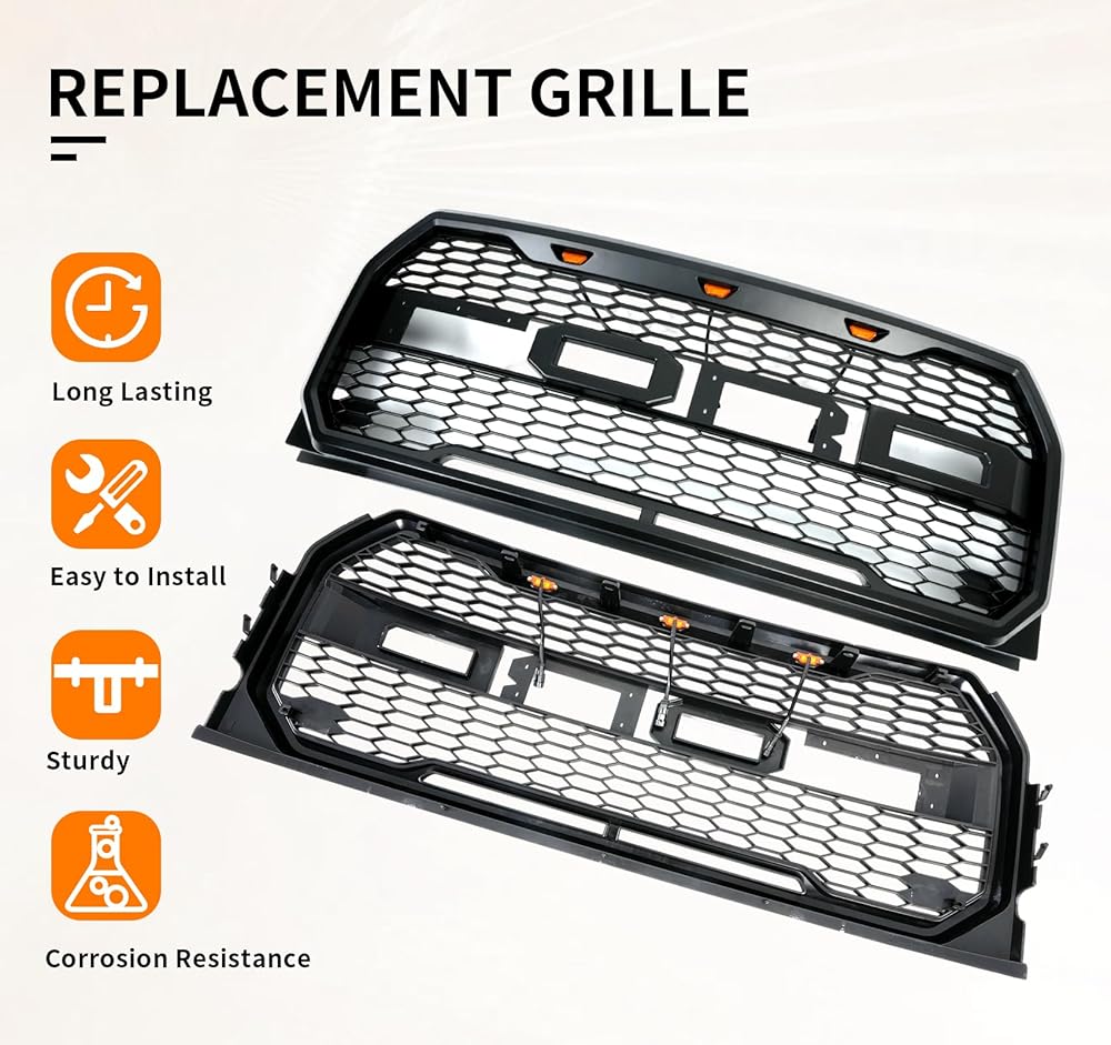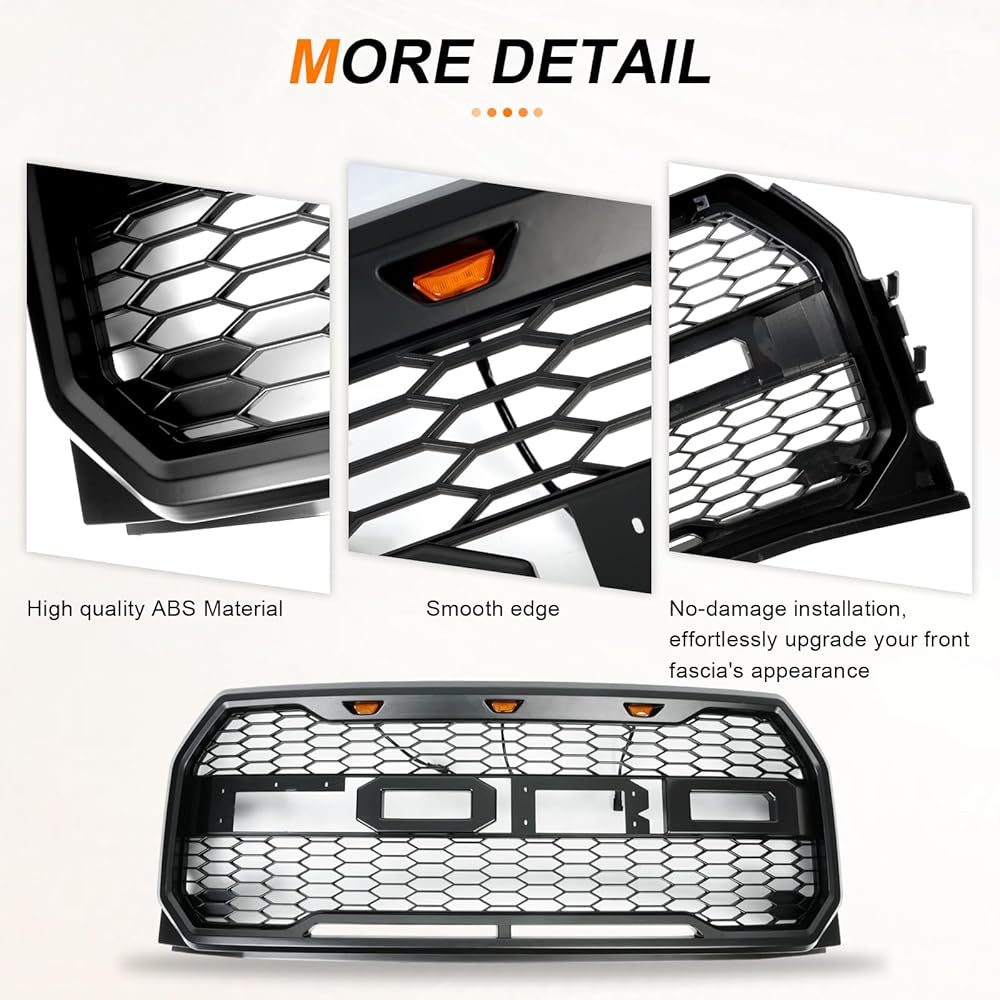 COMPATIBLE WITH:The front grill is fit for 2015 2016 2017 f-150
