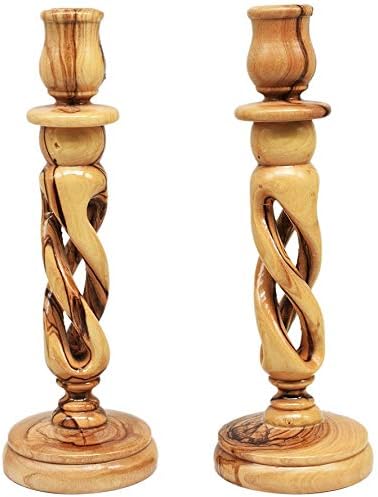 LION OF JUDAH MARKET Hand carved Bethlehem Olive Wood Candlesticks Candle Holders (6 inches)