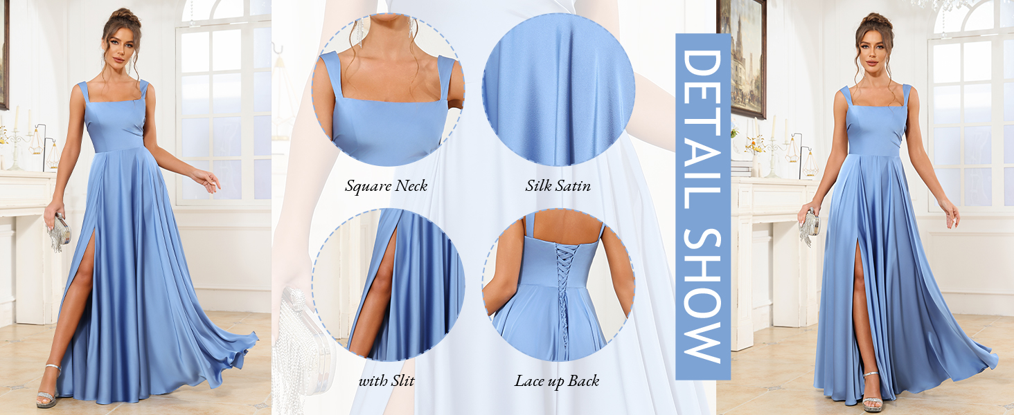 Occasions: This satin square neck long dress is good choice as bridesmaid dress, prom dresses, party dresses, formal dresses, evening gowns, ball gowns, formal gowns, wedding guest dress, cocktail dress, gala dresses, bride dresses, HoneyMoon and other special occasion event dress