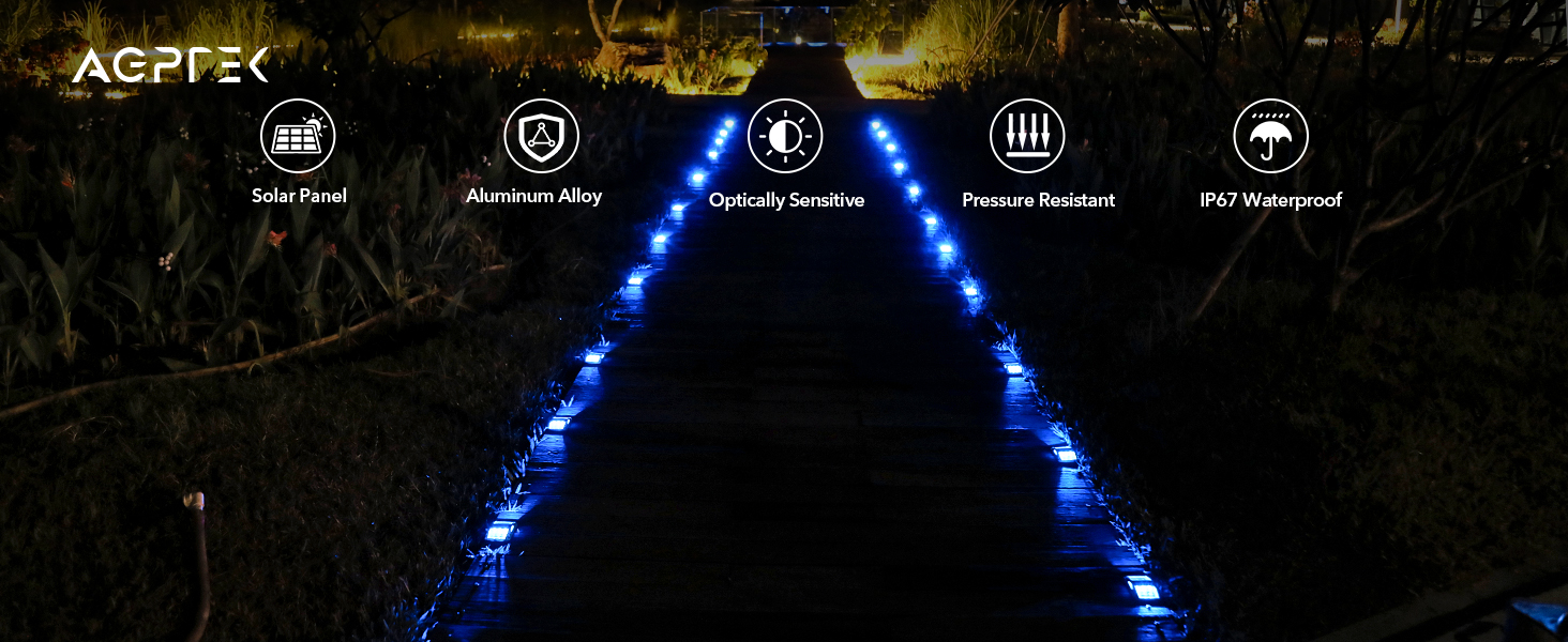 【Super Sturdy LED Driveway Lights】High-quality aluminum alloy shell effectively keeps these solar powered deck lights from rusting and can withstand the crushing and hit of 3 tons of cars and ships, no need to worry about automobile and kids stepping on. Not only can be used as outdoor guide lights but also a great warning security light