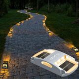 【Unique Design Solar Deck Lights】Our solar driveway lights adopts unique Car Shape Double-sided Design which makes these outdoor solar lights glow more evenly without spots, also the lighting effect can be connected into a straight line. A great solar marker lights for different place, like driveway, sidewalk, pathway, steps and docks and etc
