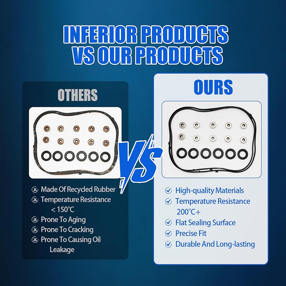 ✨【Premium Quality Construction】Crafted from high-grade materials (including advanced rubber formulations), our OEM valve cover gasket kit is subjected to strict quality control during production and repeated testing. Engineered for repair scenarios, it delivers durability and reliable performance—even under harsh conditions.
