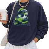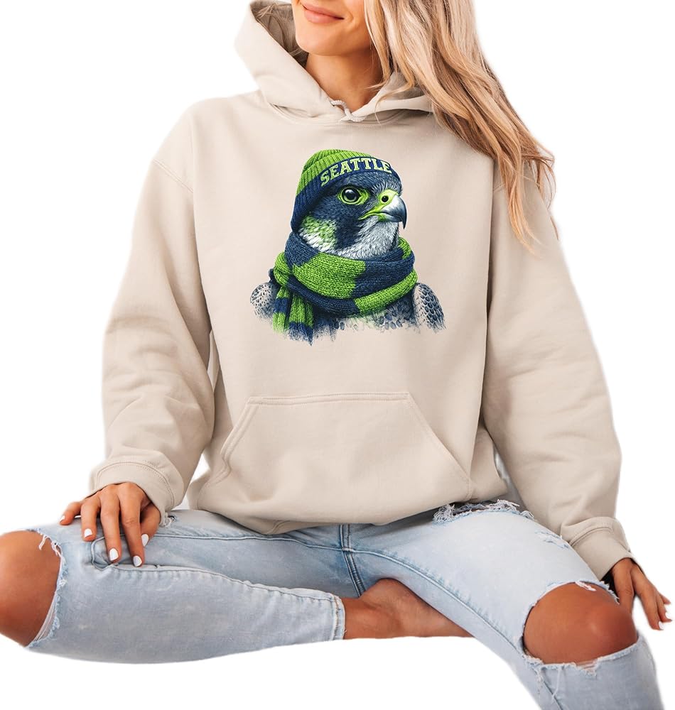 Introducing our Seattle Football Sweatshirt, the perfect mix of comfort, warmth, and team pride for both men and women! Crafted with premium-quality fabric, this sweatshirt keeps you cozy while proudly displaying your Seattle spirit. Featuring a falcon wearing a beanie and scarf in iconic blue and green colors, this sweatshirt blends sports passion with stylish artistry. Whether you're cheering from the stands or relaxing at home, it's your go-to piece for every season. This Seattle Sweatshirt isn't just apparel — it's a symbol of loyalty, comfort, and connection to your favorite city. Designed for easy pairing with jeans or joggers, it brings casual elegance to your everyday wardrobe. Looking for a looser fit? Order one size up for an extra-relaxed feel. Perfect as a gift for Seahawks fans or anyone who loves unique game day fashion!