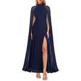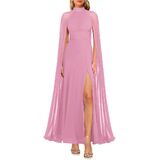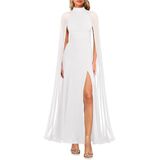 Design:Formal party dress features with long sleeve, cape design, sexy halter neck, high split, long length, a line dress, mesh dress, zipper at back, bodycon maxi dress, classic solid color.
