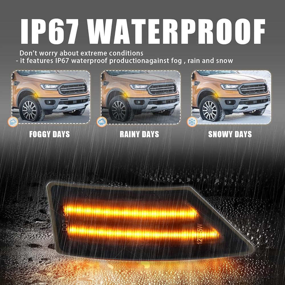 1. Perfect Compatibility – Specifically designed for LED side marker lights for2019-2023 Ford Ranger Tremor XL XLT Lariat with our cutting-edge front fender side marker light;OEM Part Numbers: KB3Z-13A565-A / KB3Z-13A565-B / KB3Z13A565A / KB3Z13A565B.