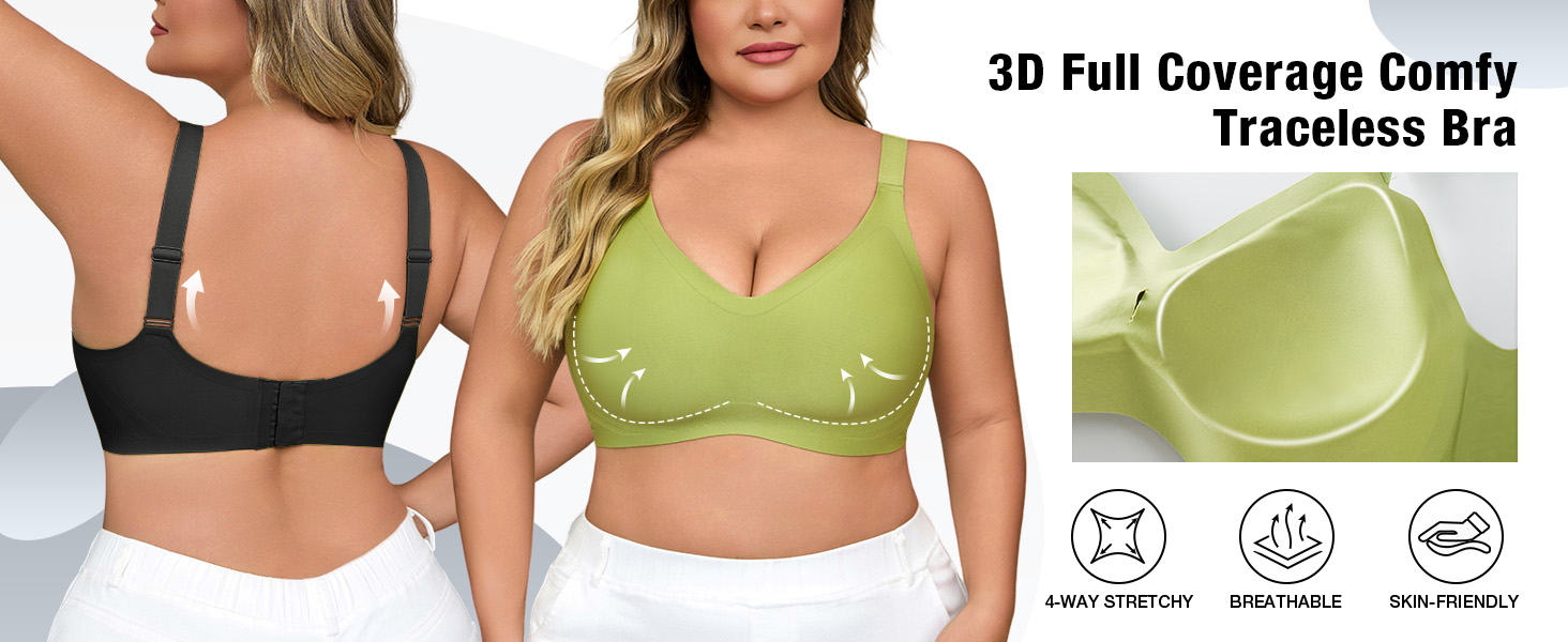 【WIREFREE & SILICONE LINE SUPPORT】Say goodbye to uncomfortable underwires! Our new technique of silicone lines provide gentle support without compromising comfort