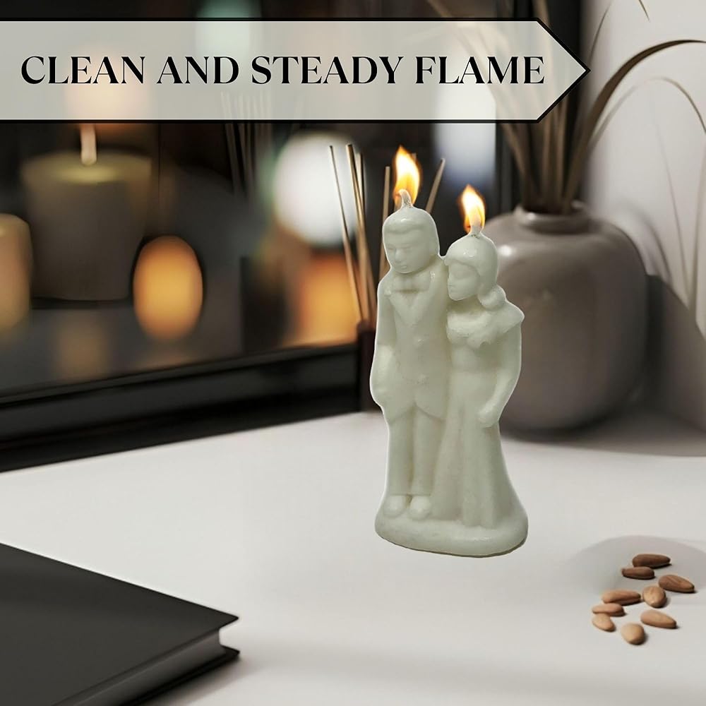 Create an intimate and romantic atmosphere with our Vrinda® Decorative Unscented Wax Classic Candle featuring a wedding couple design. Made from supreme-quality wax, each candle is unscented and dripless, ensuring a clean and long-lasting burn. The assorted designs add a touch of allure and passion to your space, making them perfect for bedroom decor, date nights, anniversary celebrations, or as a thoughtful gift for couples. Handcrafted with attention to detail, these candles are unique and charming additions to any home decor. Surprise your loved one with this romantic gift that symbolizes passion, love, and intimacy. Elevate your space with these exquisite candles, adding a touch of modern elegance to any room. Versatile and chic, they seamlessly complement various decor styles, whether placed on your bedroom nightstand, coffee table, or any corner of your home, infusing it with sophistication and style.